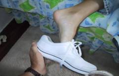 “God her feet smell good,” he commented as he made room for the old man to come in and see for himself. Being the dominant that he was, the old man slapped her soles with his hand after he had smelled every inch of her bound feet. The young man knelt back down and started licking Rachel’s soles with flat, broad strokes of his tongue. When he got to the balls of her defenseless feet, he stopped and used his teeth to chew on them. This feeling sent Rachel into a fit. She bucked her hips and tried to press down on his face with her feet. The chewing tickled so badly, but it also made her extremely horny.