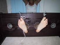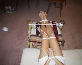 “Please don’t stop,” Rachel pleaded. She ground her hips around and tried to pull her hands into her lap. The rope prevented that. The younger man knew it was time to move the tickling to the next phase. The old man stepped back as the younger man bent down and placed a kiss on Rachel’s big toe. The kiss caught her attention and she bit on her bottom lip. Rachel knew what was next and she also knew how much she enjoyed having a mouth on her tender feet. He started off smelling her feet by running the tip of his nose from her little heel to her toes and then between each toe.