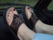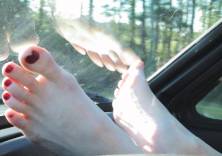 Rachel enjoyed taking direction from the men. She was a natural submissive. She was treated very well and the men were polite to her. They didn’t want to hurt her; they just enjoyed having her do whatever they wanted. The next day she was told that she was going to the beach. On the drive out, her feet got more than a few stares from the men they passed. Who could miss them way up there on the dash?