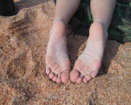The men spread her legs a little to give each of them enough room to work. The younger man went to work on her toes. His strong fingers pulled on each of Rachel’s toes and he slid his fingers between each of them too. The older man was much more into her young soles. He grasp her foot like a sandwich and used his large thumbs to stroke her sole from heel to toe and then back again. He remarked how soft her soles were and complimented her on taking care of them.